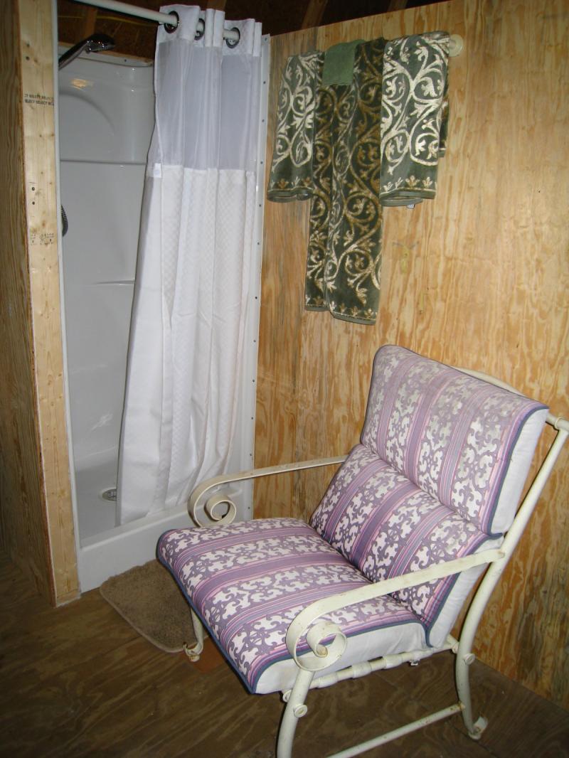 Here Below is the extra shower in the large seperate laundry cabin. Locks up for privacy.