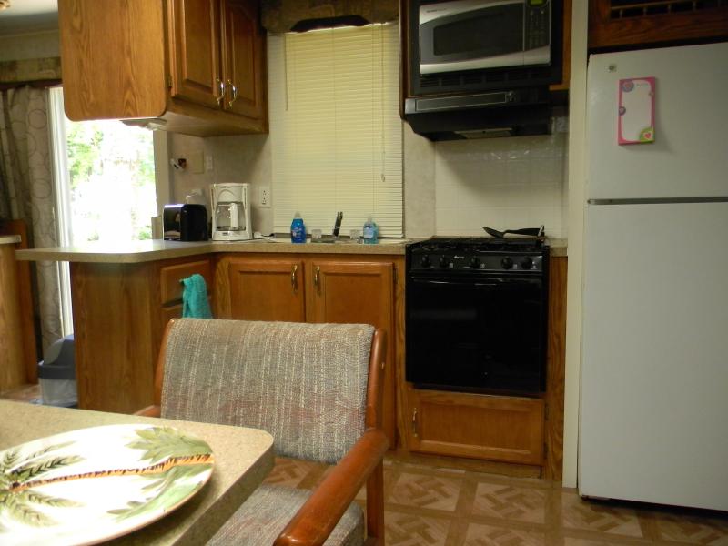 Full Kitchen,HouseRefrigerator, dishes,coffeemaker,microwave free WIFI, Central A/C, Satelite TV, electric heaters, Private Washer & Dryer access (see diagram below), hair dryer, oven,electric skillet,toaster,pots & pans & linens. Click on right bottom corner of each photo to enlarge.